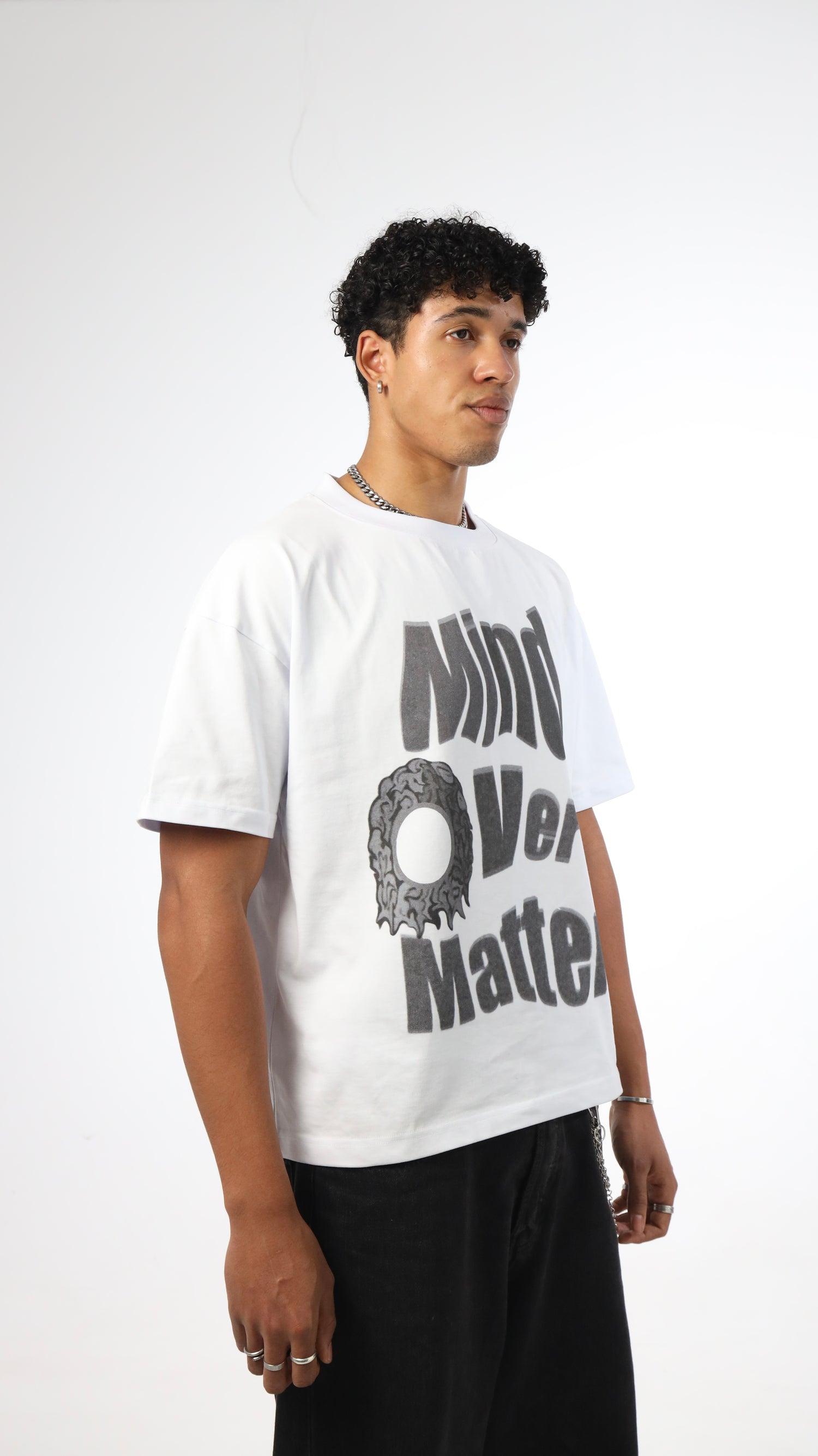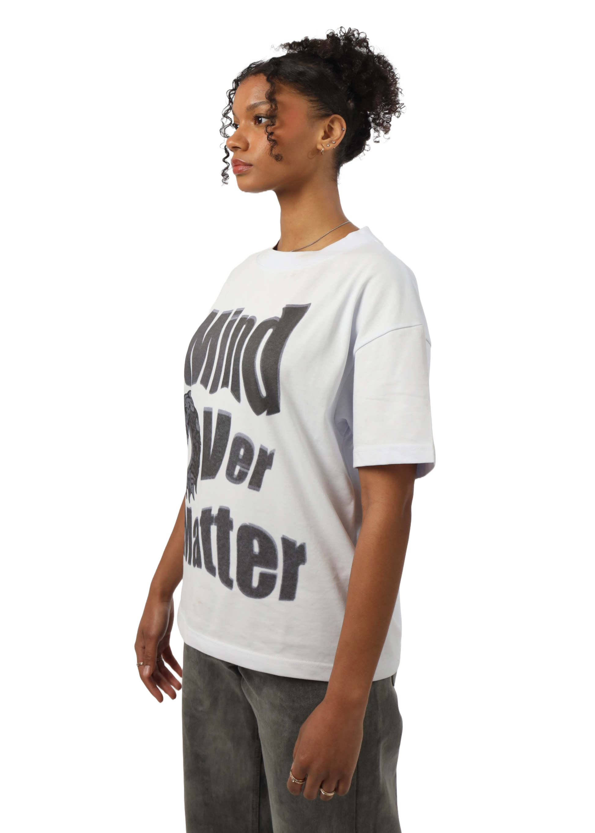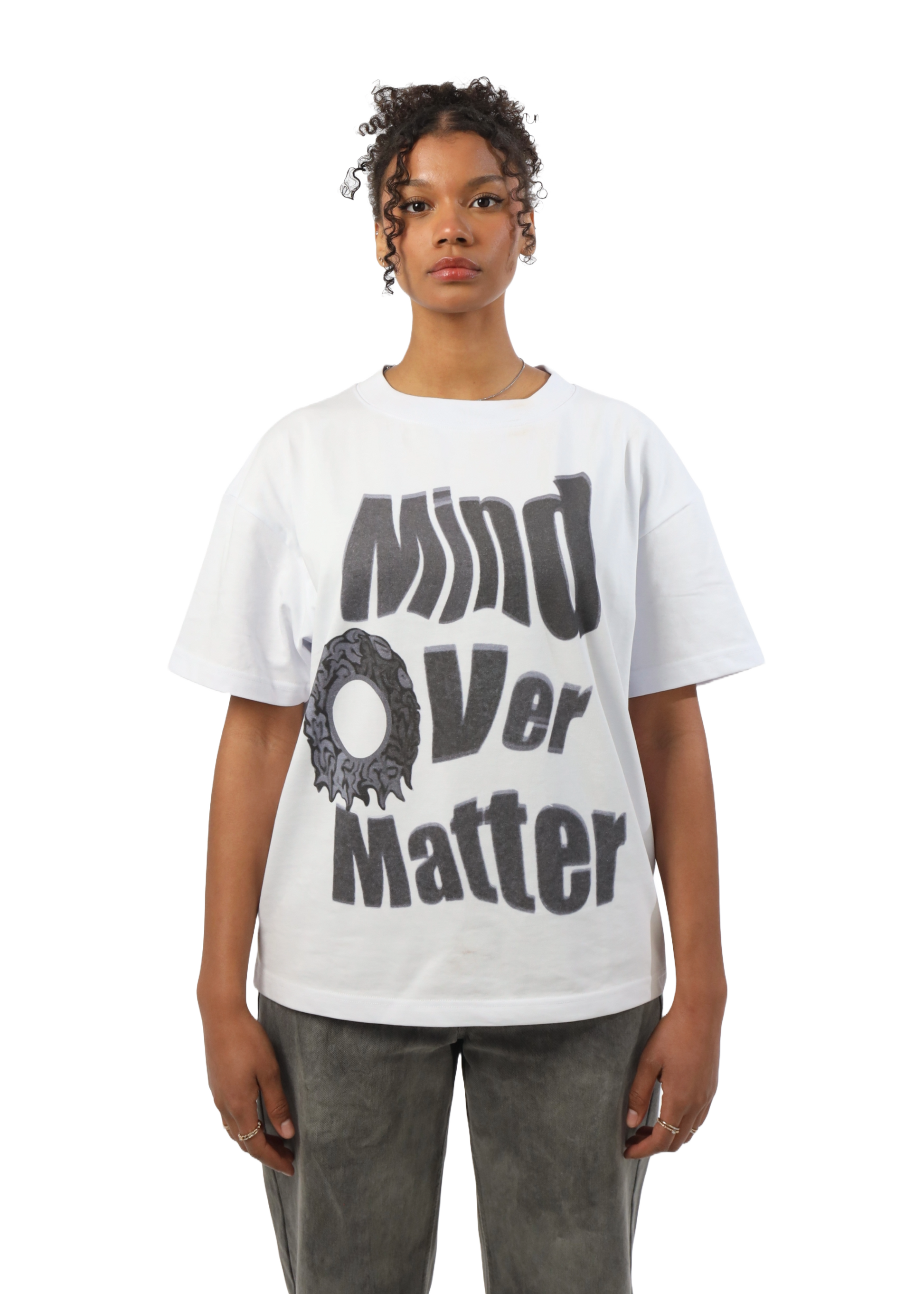 Cropped und boxy – dieses Shirt sitzt einfach perfekt. „Mind over Matter“ ist nicht nur der Spruch, sondern ein Statement. Ideal für alle, die Bock auf coole Pieces haben, ohne Kompromisse bei der Qualität einzugehen.