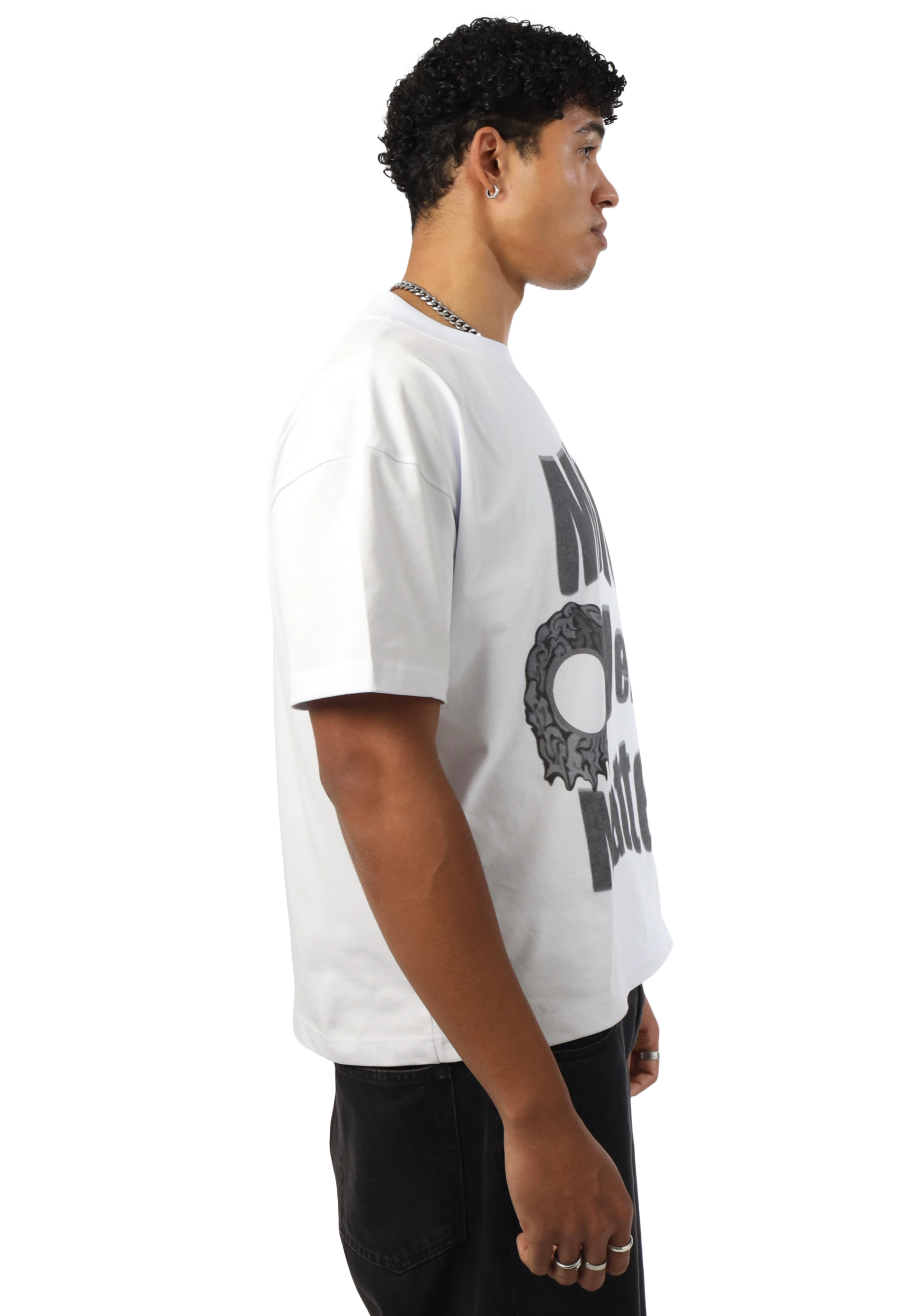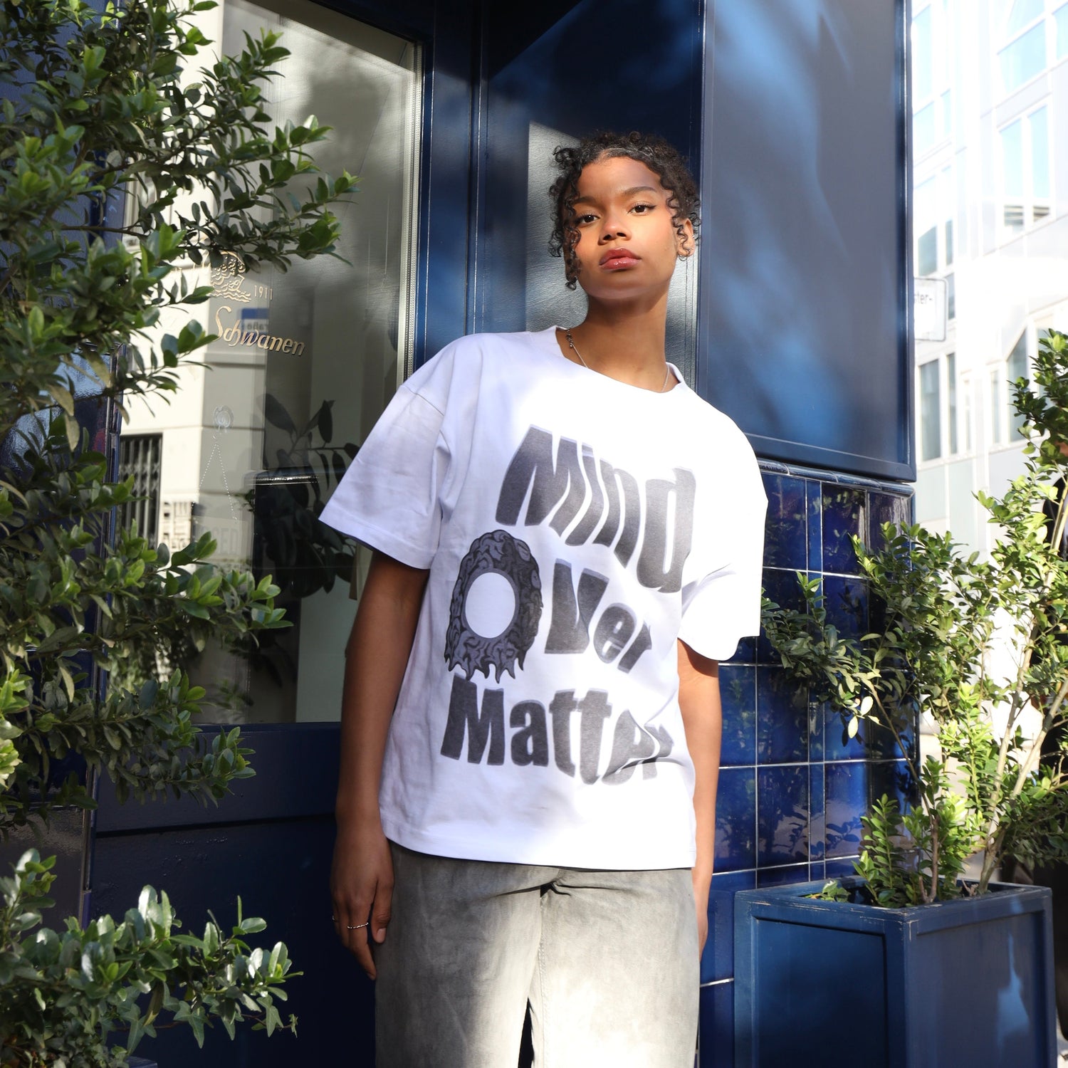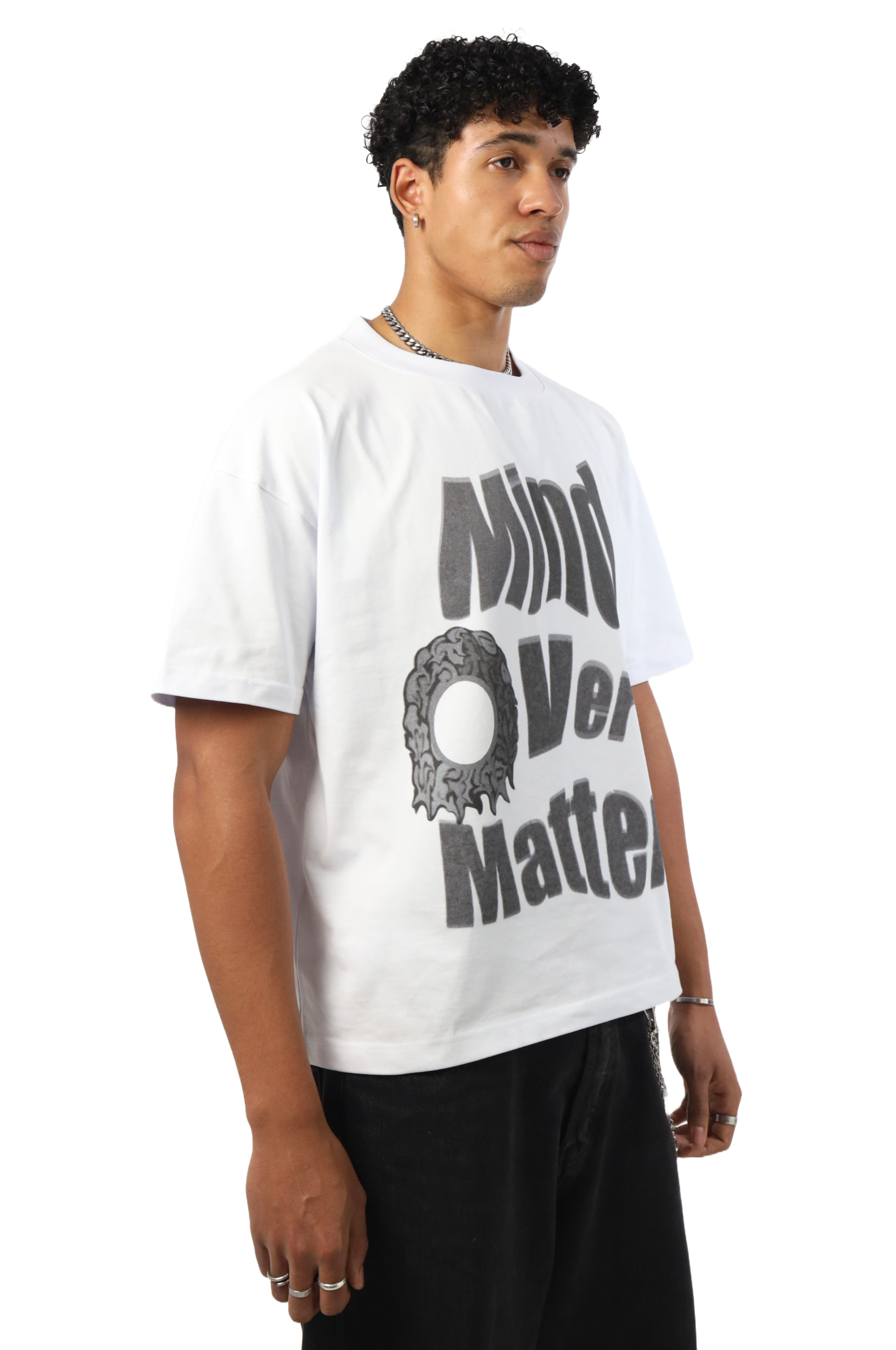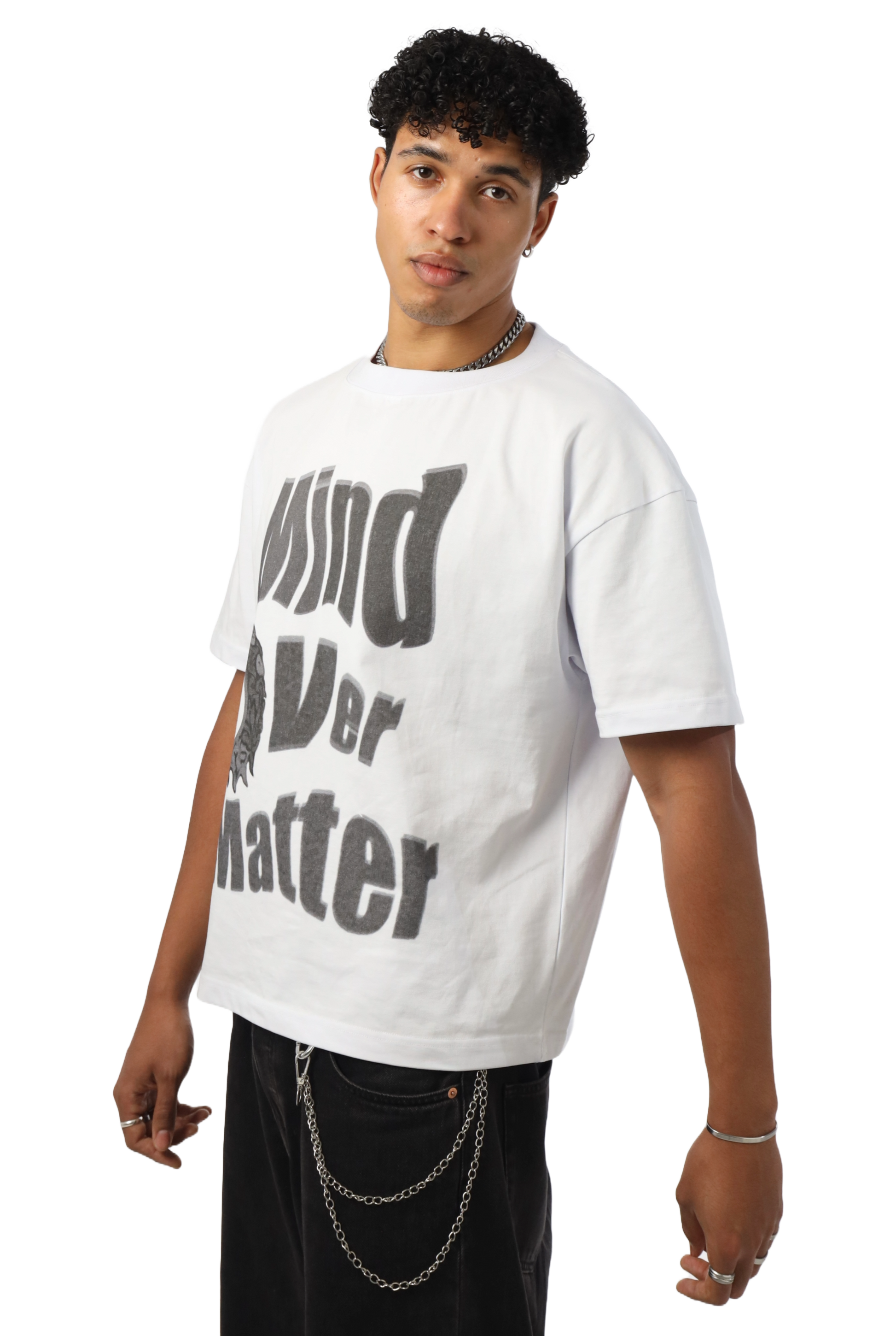 Cropped und boxy – dieses Shirt sitzt einfach perfekt. „Mind over Matter“ ist nicht nur der Spruch, sondern ein Statement. Ideal für alle, die Bock auf coole Pieces haben, ohne Kompromisse bei der Qualität einzugehen.